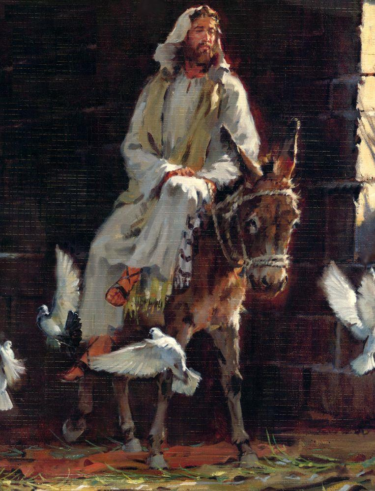 AE 31:7. One who does not know the signification of ... “a donkey’s colt,” in a representative sense, will suppose that the Lord’s riding upon a donkey’s colt was significative of misery and humiliation. But it signified royal magnificence; for this reason the people then proclaimed the Lord king, and strewed their garments upon the way. This was done when He went to Jerusalem, because by “Jerusalem” is signified the church... and “garments” signify truths clothing and serving good....